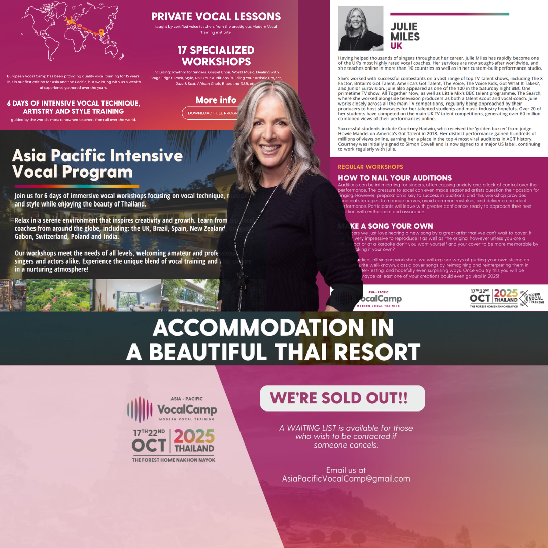 Julie Miles is one of the UK's most sought after voice coaches. With years of experience in music, performing, singing and coaching, alongside an ongoing commitment to her own training, it’s hardly surprising that Julie is constantly in demand by singers of all ages, experience and musical genres.